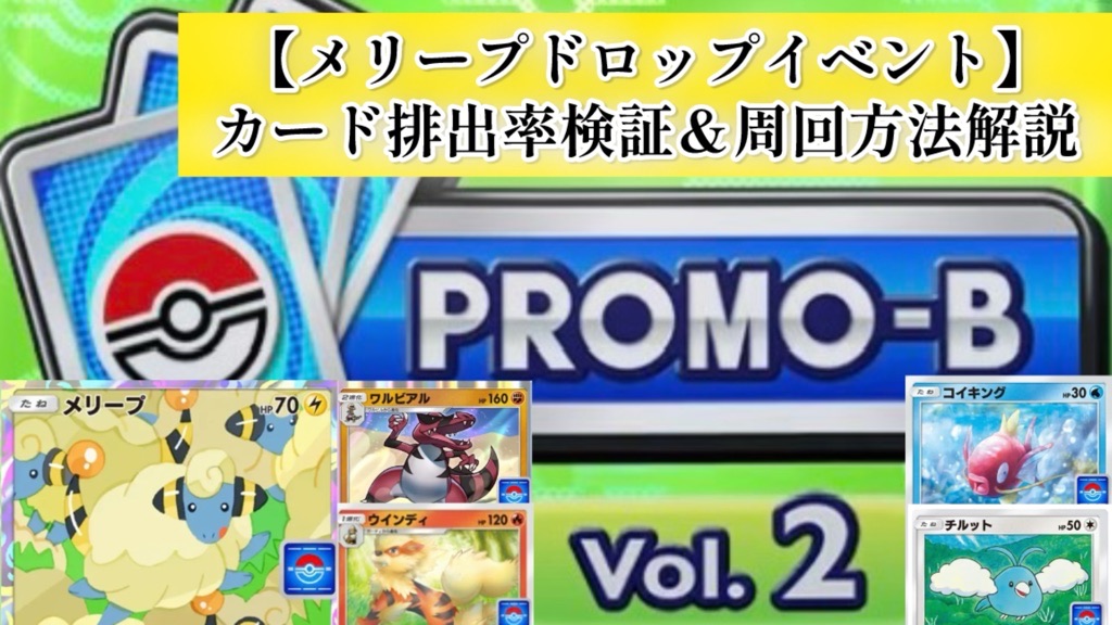 今回は2026年1月1日(木)15:00~1月11日(日)14:59まで開催されているポケポケの期間限定イベント『メリープドロップイベント』の効率的なオート周回方法解説&【プロモパックB vol.2(全5種)】カードの各種2枚入手達成時の排出率を検証していきます!