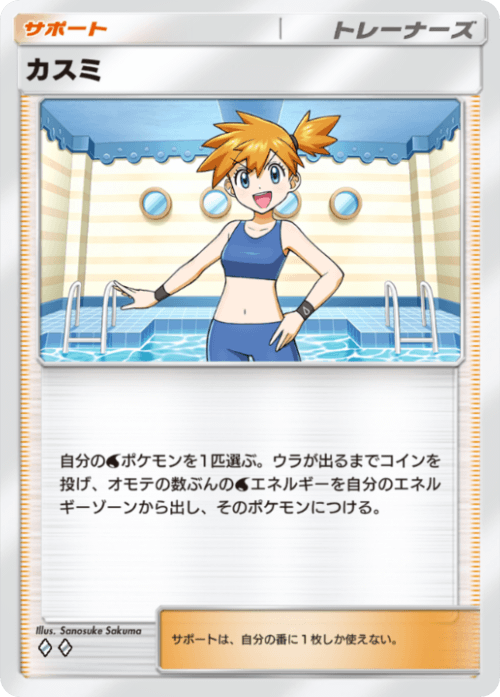 やはり一番警戒すべきは唐突な超エネ加速をしてくる『カスミ』の存在ですが、上記でも挙げた通り超エネ加速をされようとも主力のメガヤドランexのバトル場への火力が低い為それほど脅威とならないパターンが多いです。