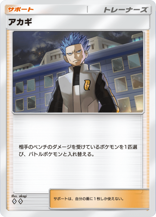 そして残り1・2ポイントを詰める盤面orメガヤドランexを倒して試合を決める場面で大活躍してくれる『ナツメ』『アカギ』強制入れ替え系2種も安定した勝率をもたらしてくれるキーパーツなので、過剰ですが2枚ずつ採用しています。
