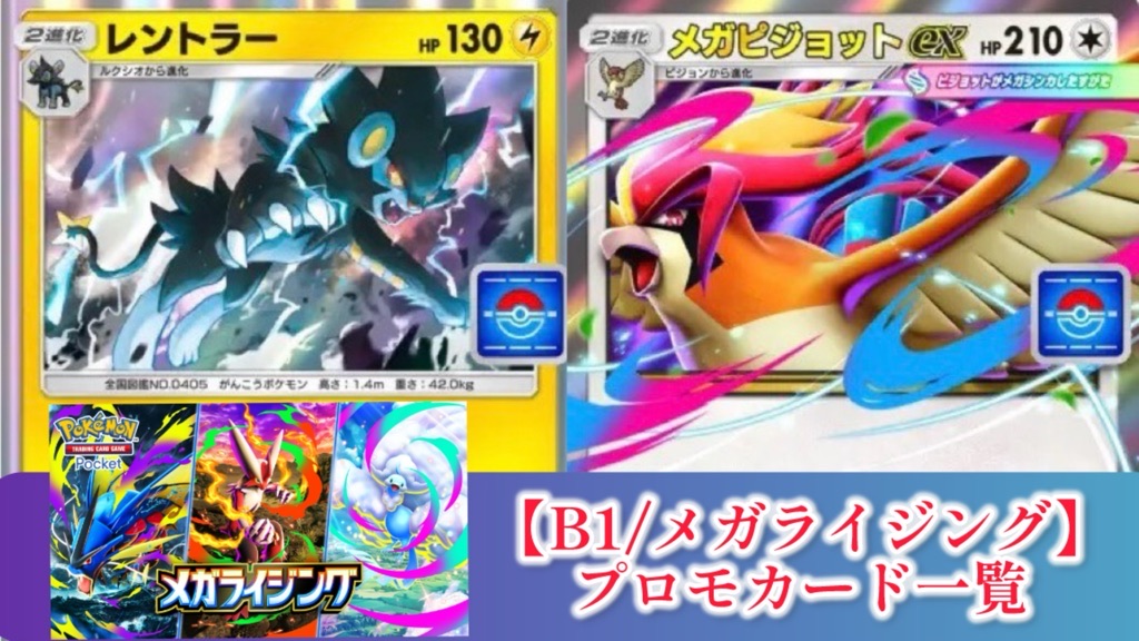 今回はポケポケの記念すべきBシリーズの始まりとなる【B1/メガライジング】環境で配布される限定プロモカード一覧をまとめたメガライジング編プロモカードリストを作成しました。