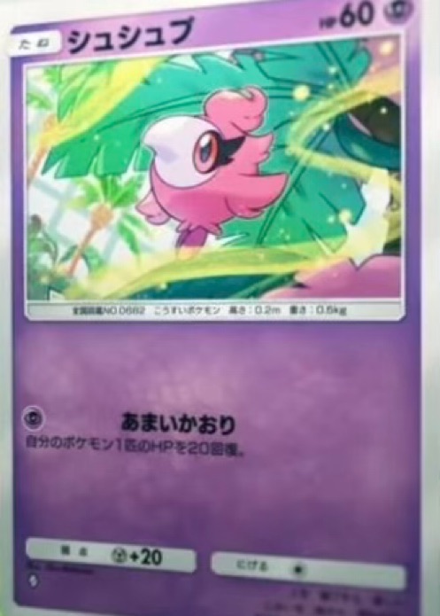 | 【技】 超①:あまいかおり 自分のポケモン1匹のHPを20回復。 |