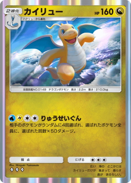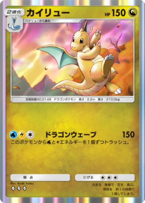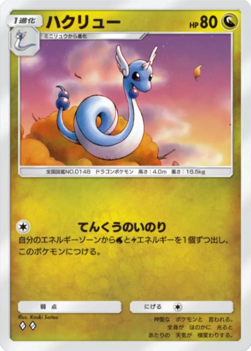 今回のパックではカイリューよりも「ハクリュー」が圧倒的に強く、無色①エネで水&雷を自身に加速できる為、どのデッキにもカイリュー系が出張可能となり、今後のカイリュー系ラインの中間進化はほぼ確定でこのカードになるレベルで優秀な1枚となっています。