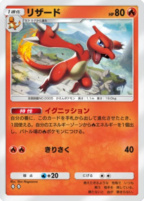そしてシャイニングメガではそんなメガリザードンXを超える優秀なカードとして「リザード」が収録されており、進化時に炎タイプに炎エネを加速可能という超強力な特性+②エネ40打点というリザードン系という最強種の1進化にしては申し分ないハイスペックな性能となっています♪
