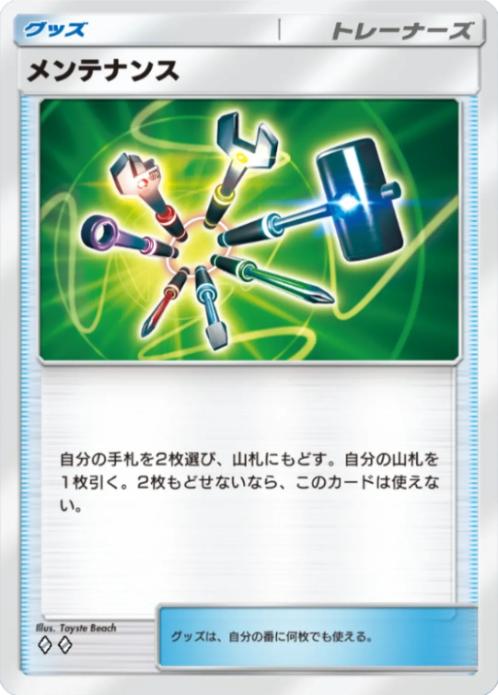 デッキに2枚戻して1枚引くという意味不明な性能をしていますが、『モノマネむすめ』や『ハイキングコース』等の手札が減っているほど得をできるドロソと組み合わせると強く使えるグッズ。