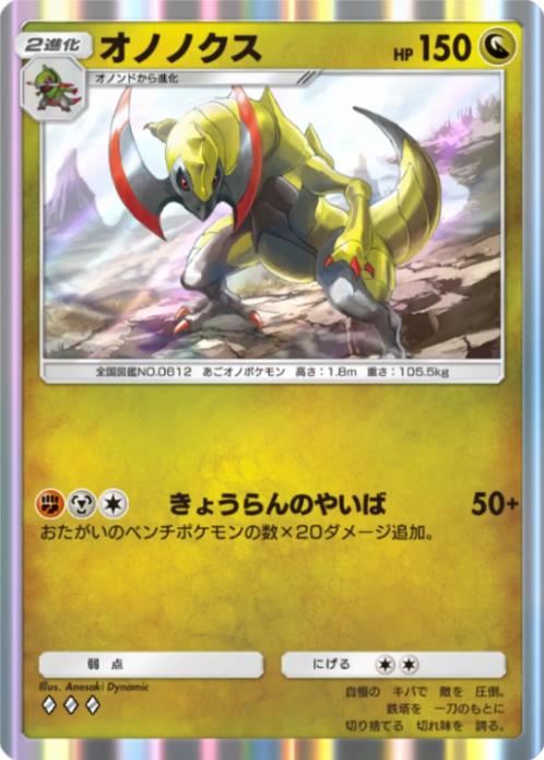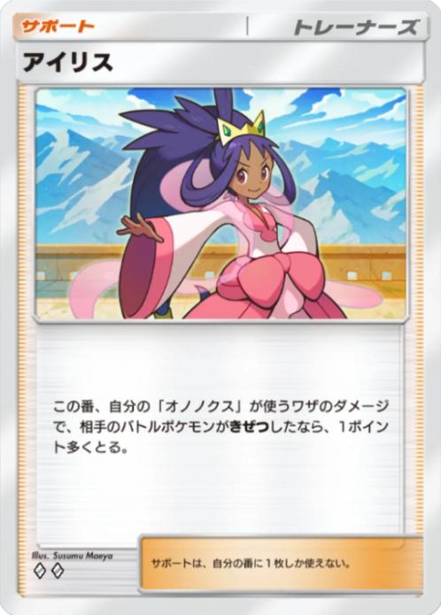 アイリスを使ったターンにオノノクスで敵を倒すと1ポイント多く貰え、相手のexを倒すとメガシンカexを倒した時のように速攻試合を終わらせられるのが超強力な専用サポートによる組み合わせ。
