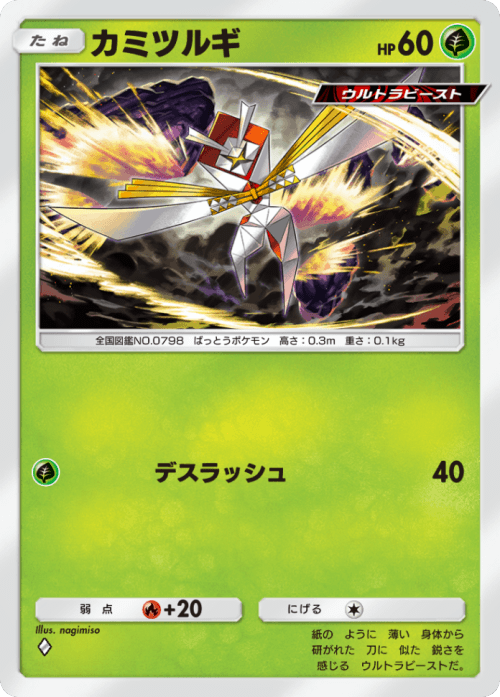 端的にいえば異次元クライシス産の草タイプの『カミツルギ』の鋼タイプ版となっており、①エネ40打点の超速攻力で最序盤アタッカーとして様々な鋼デッキに出張できる汎用性を持つたねポケモン。