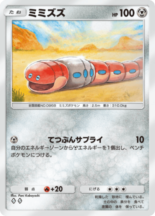 このカードのお陰で例えば『ミミズズ』のような逃げエネが重すぎて何ともならなかったカードも活かせる可能性が出てきた為、鋼タイプの強さを一段階上げてくれるような性能となっています!