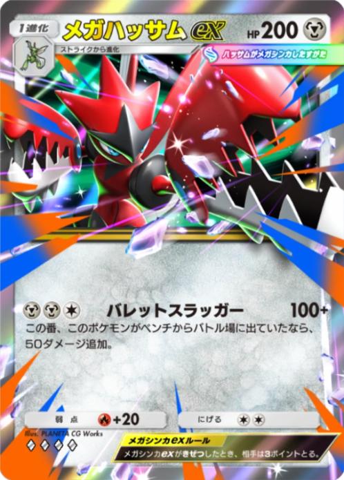 特性により鋼タイプを無料で入れ替えられる為、同じシャイニングメガに収録されている『メガハッサムex』の最大打点を簡単に出せるようになり、技も②エネ60打点と悪くないものを持っている超優秀な1進化。