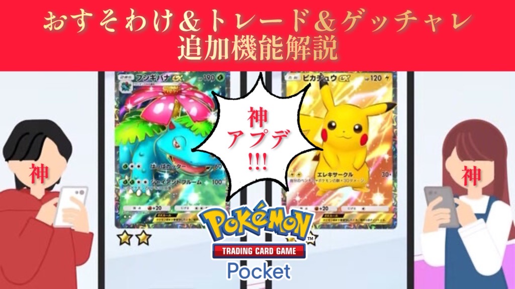 【ポケポケ】1周年向け神アプデ!おすそわけ&トレード拡張&ゲッチャレ改善内容まとめ