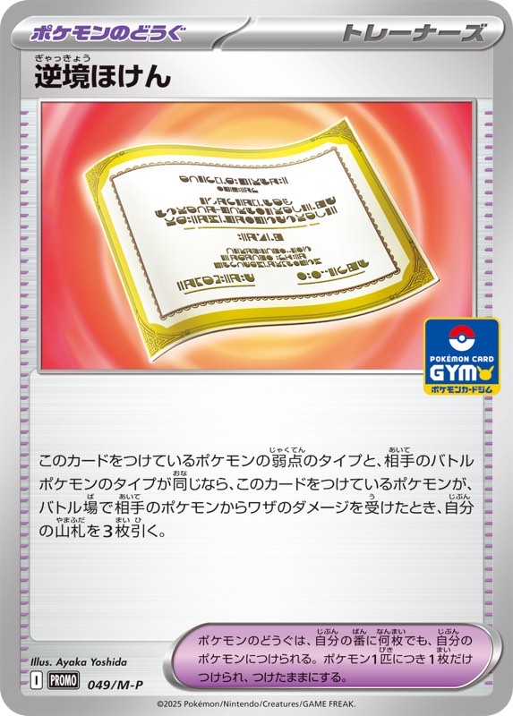 じゃくてんほけんほどのパワーはありませんが、逆境ほけんはMEGA編プロモパック2弾でしか手に入らないカードとなっているので、入手しておきたい所ですね♪