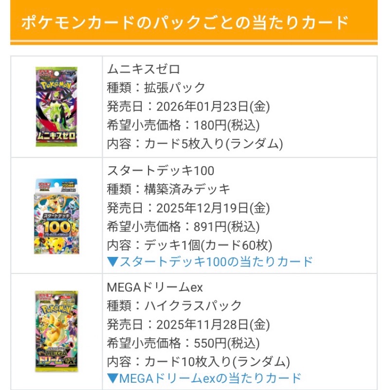 更に過去の歴代パックは勿論、例えば2026年1月初旬時点では未販売のムニキスゼロのような最新パック情報まで一目でわかるように網羅してくれているのも非常に優秀です♪