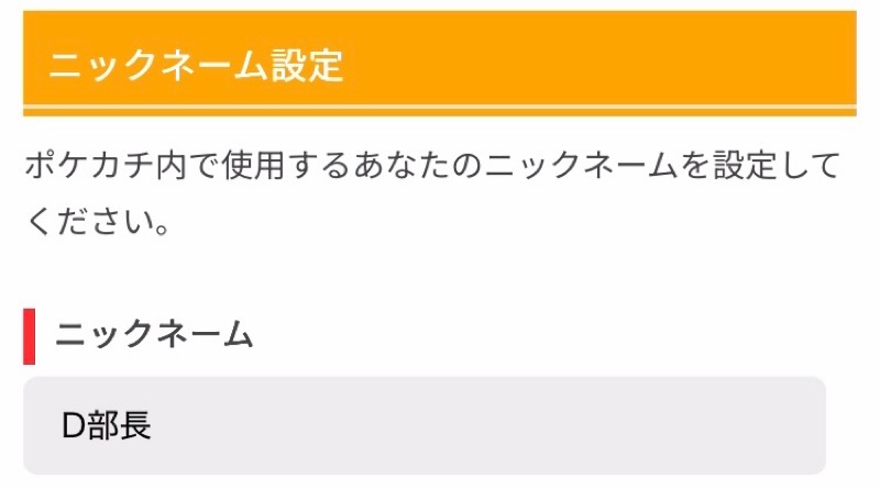 『会員登録する』をタップするとすぐに下画像の『ニックネーム設定』画面に移行するので任意のニックネームを設定します。