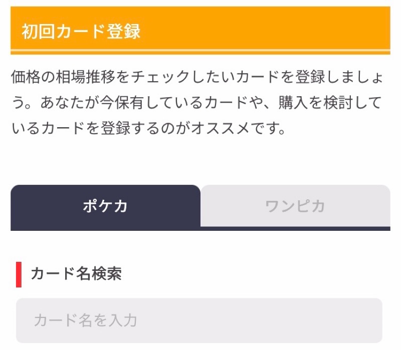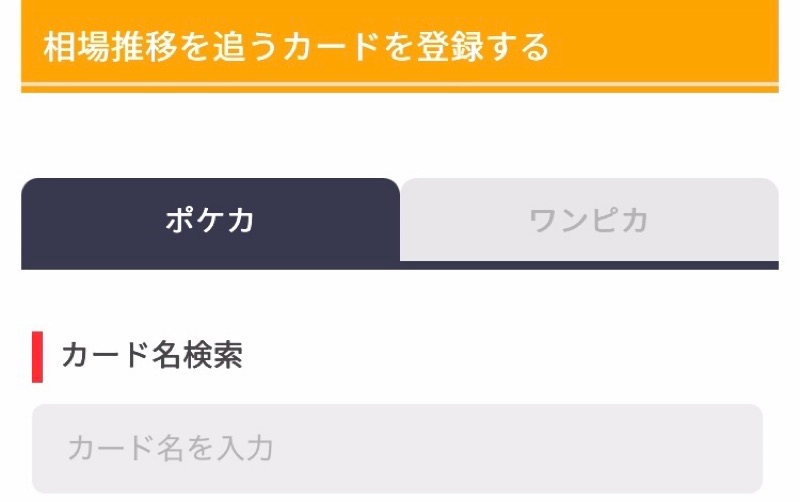 ログイン後、少し下にスクロールし「相場推移を追うカードを登録する」の項目まで進んで「ポケカ」タブが選ばれている状態にする。