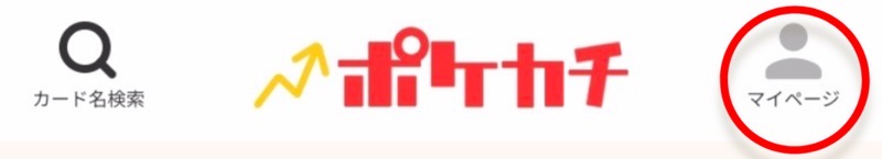 ポケカチを開いてページ右上の赤丸で囲った『マイページ』をタップする。
