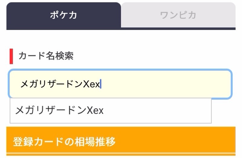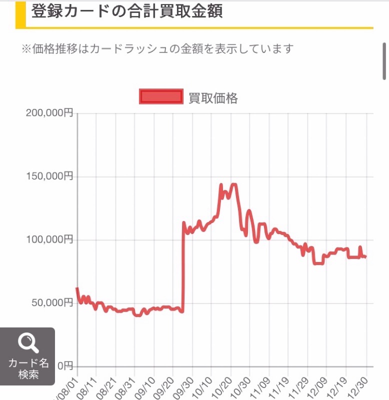 次に、相場推移を追いたいカードを『カード名検索』に打ち込む。