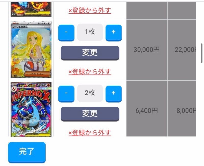(※数字を変更後に『変更』ボタンをタップせずに完了を押してしまうと変更されていない数字のまま登録されてしまうので要注意!!)