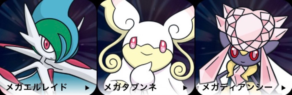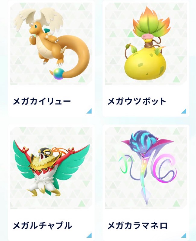 2025年10月時点で実装されているメガシンカexは下画像の通りになります。