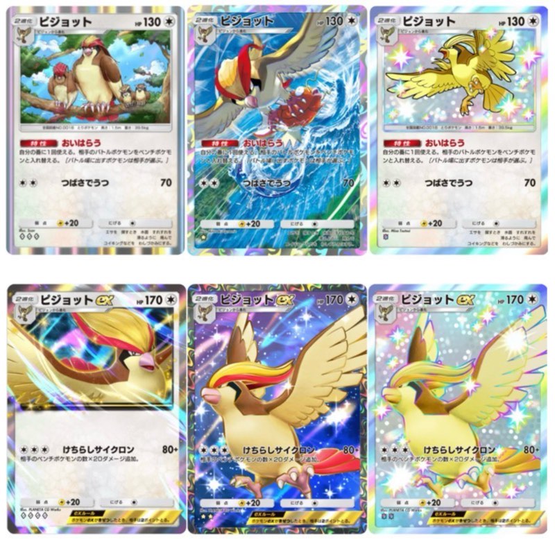 ポケポケにおいて、ピジョットは色違い含めて同一性能のイラスト違いが非ex・ex共に3種類ずつ用意されている運営に愛されしポケモンとなっています。