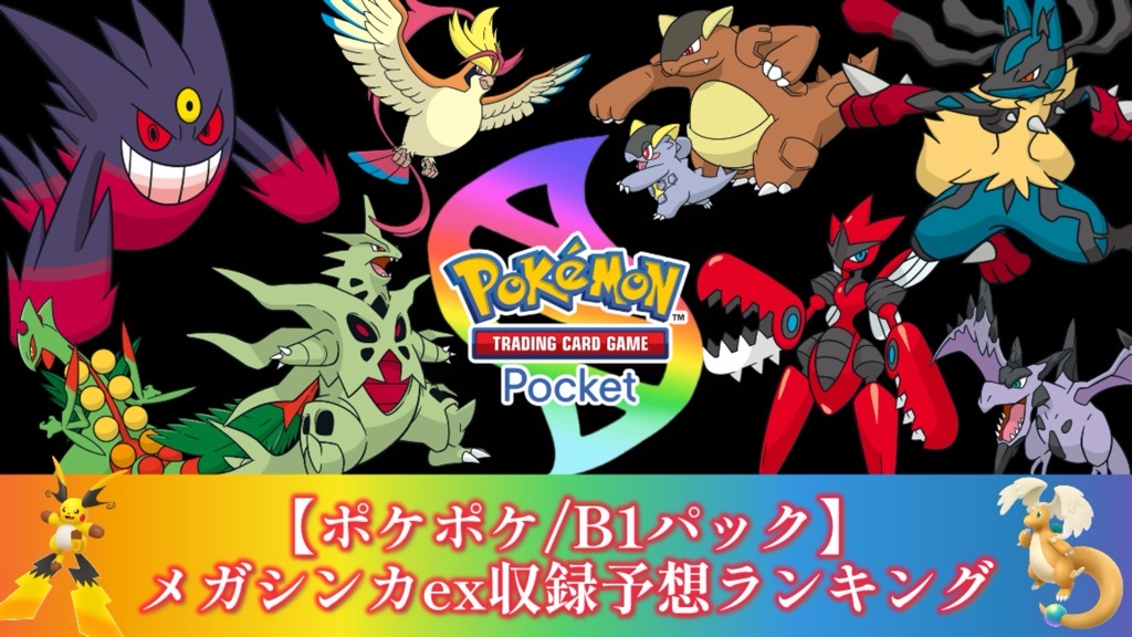 今回は2025年秋にリリース予定のポケポケB1パックで収録される『メガシンカex』の収録カード予想ランキングを発表していきます!
