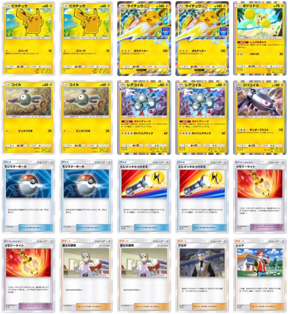 『ライチュウexドロップイベント』エキスパートのCPが使っているデッキは以下の通りになります。