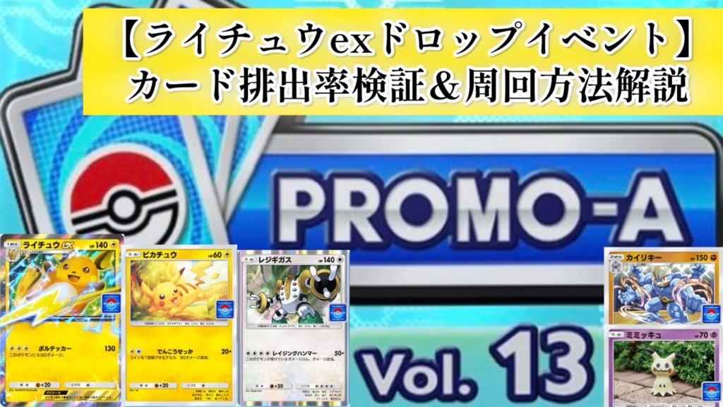 今回は2025年10月6日(月)15:00~10月16日(木)14:59まで開催されているポケポケの期間限定イベント『ライチュウexドロップイベント』の効率的なオート周回方法解説&【プロモパックA vol.13(全5種)】カードの各種2枚抜き達成時の排出率を検証していきます!