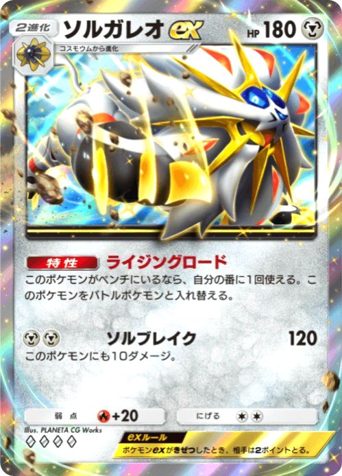 打点が不安定という唯一にして最大の欠点はあるものの、ソルガレオパックの非ex2進化の中では1番おすすめ出来るカードなっているので、7位とさせて頂きました!